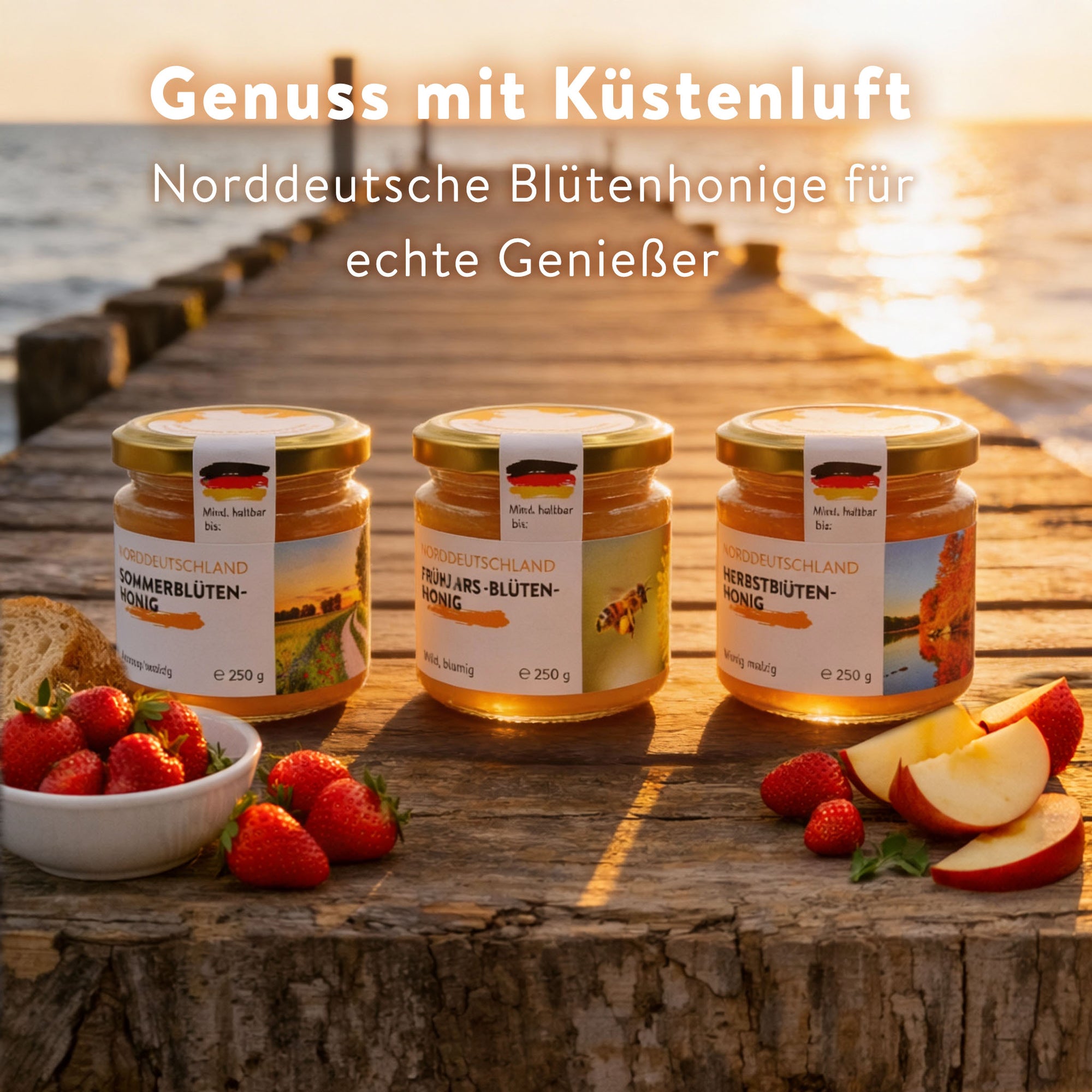 Von der milden, blumigen Süße des Frühjahrs bis hin zur würzigen Tiefe des Herbstes – jede Sorte bringt ihre eigene Note mit. Die Trilogie eignet sich perfekt als Geschenk oder für den eigenen Frühstückstisch.